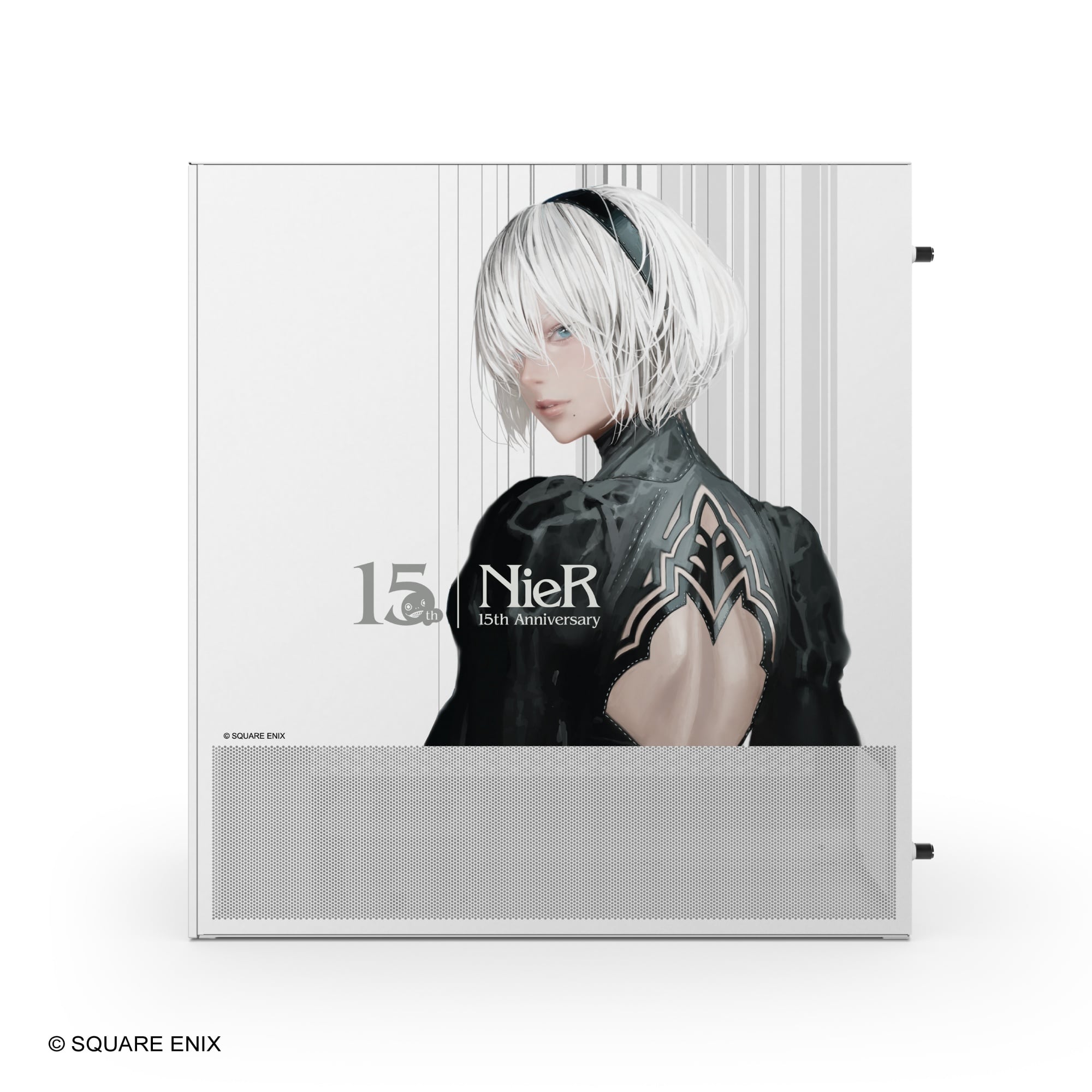 作品を象徴する意匠やカラーリングを取り入れ、ゲームの世界観をハードウェアとして具現化しました。ベースモデルはNZXT「H5 Flow」となり、高いエアフロー性能と洗練された設計に、ニーアの美学を融合させた限定モデルとなります。